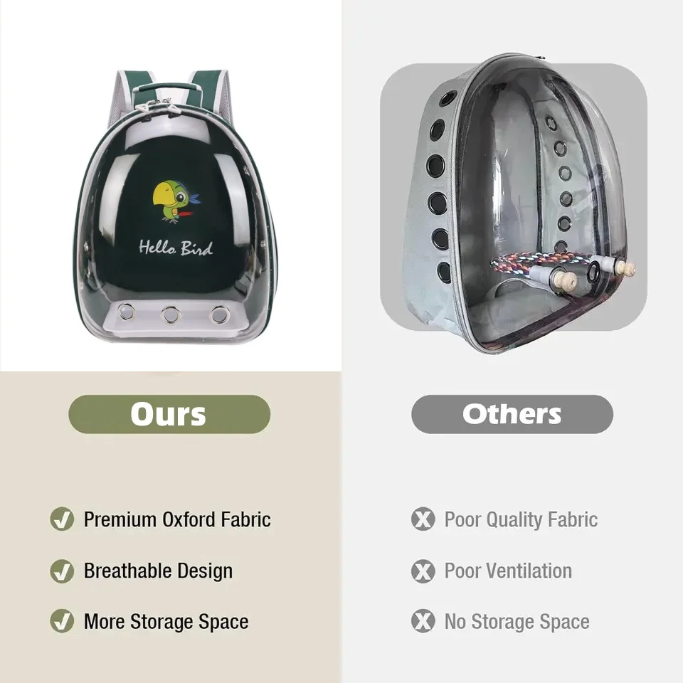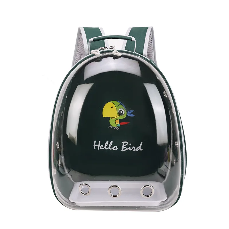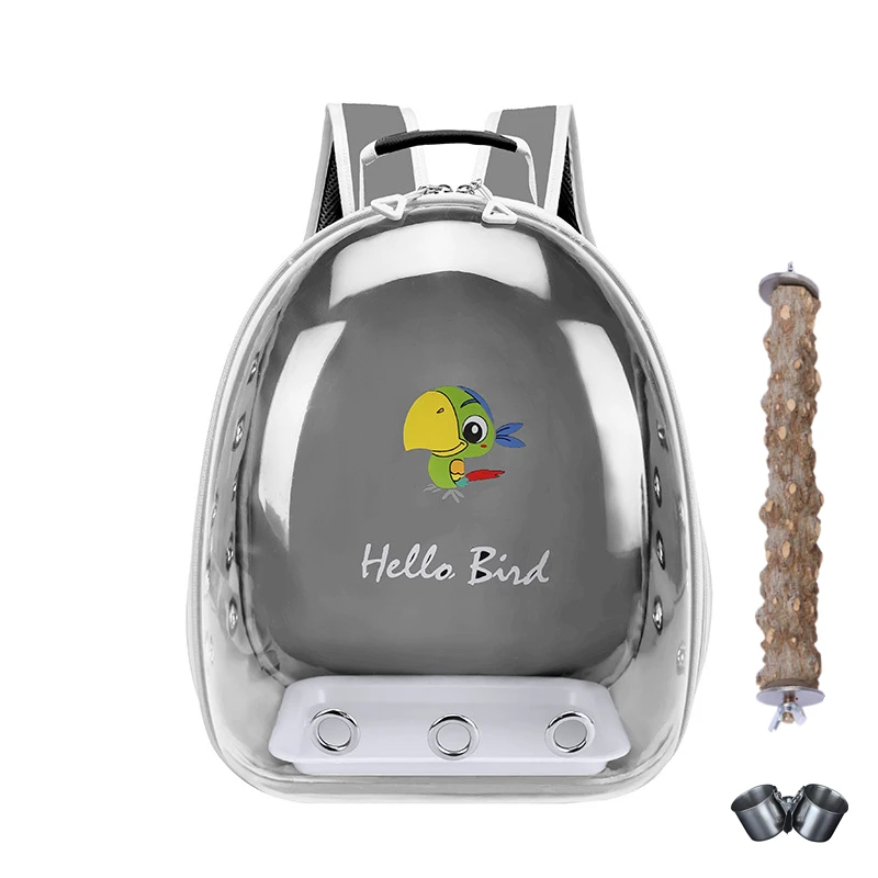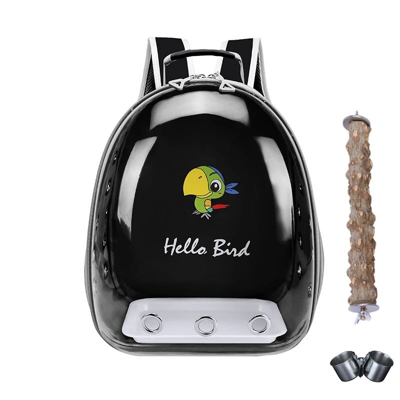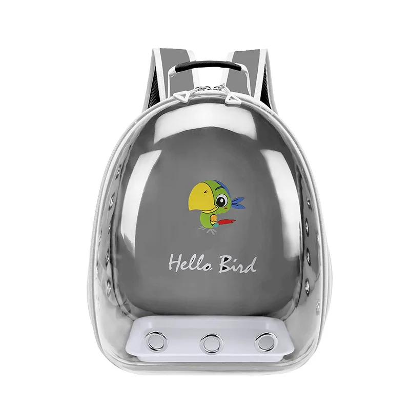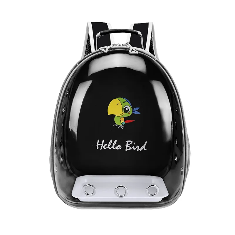 【See-through Bubble Bird Carrier Backpack】Space capsule liked bird travel backpack, pet safe transparent hard shell protects your bird better. Great bird travel backpack with stand perch and tray included.