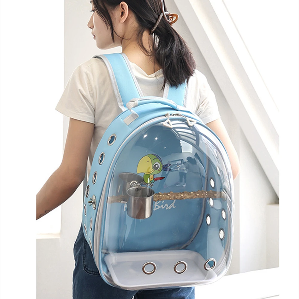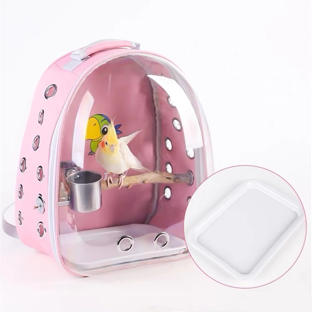 Portable Bird Cage with Prech Feeder and Tray, Acrylic Pet Backpack Bag, Parakeet, Cockatiel, Parrot, Bunny, Travel – PawMarketplace