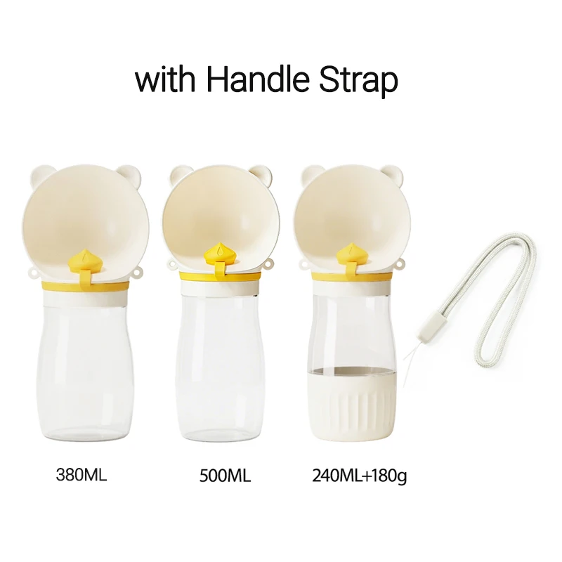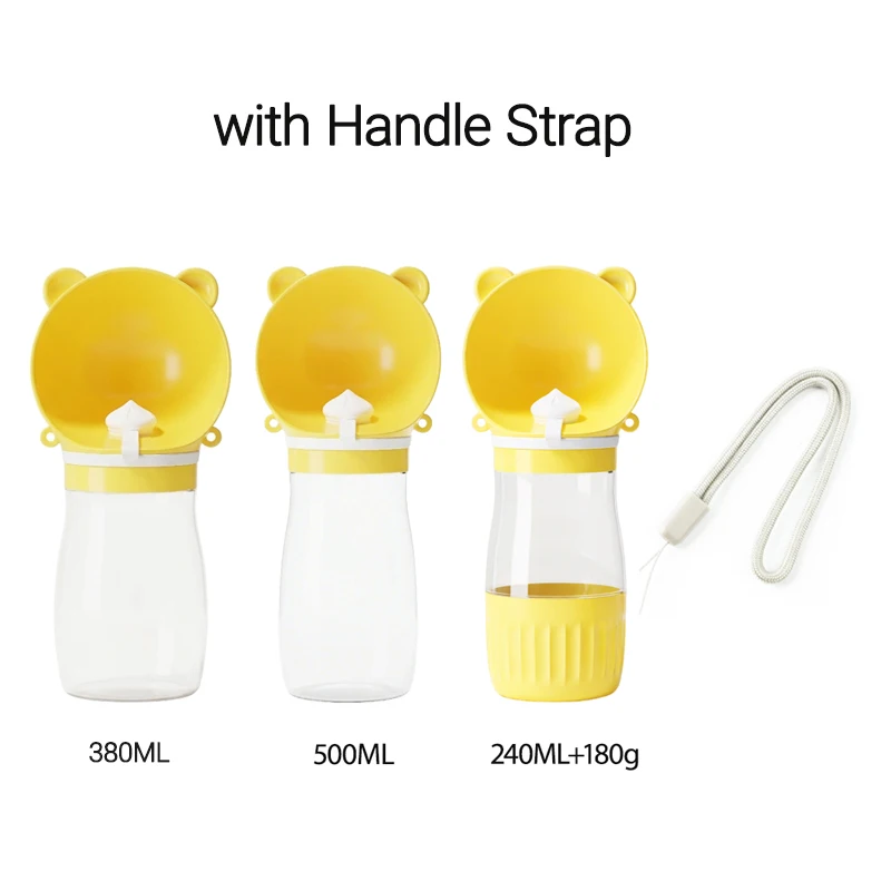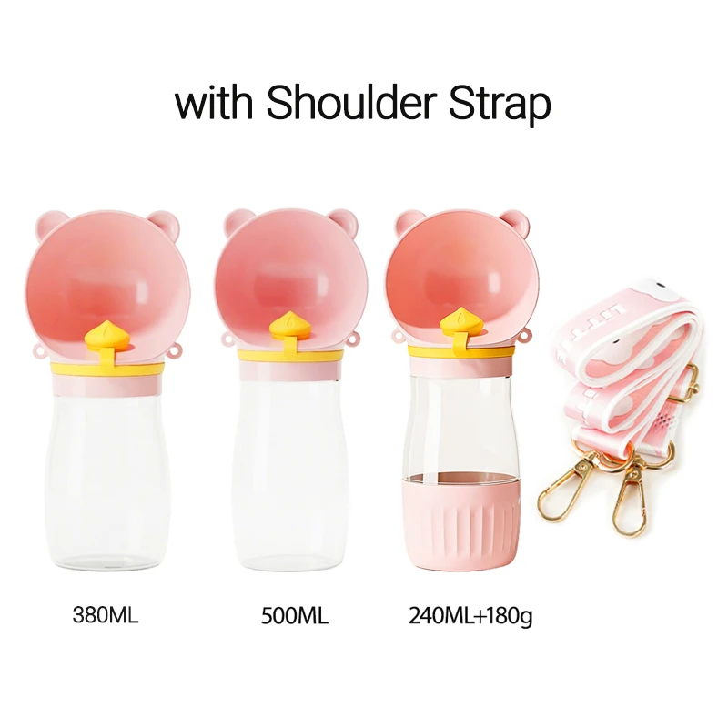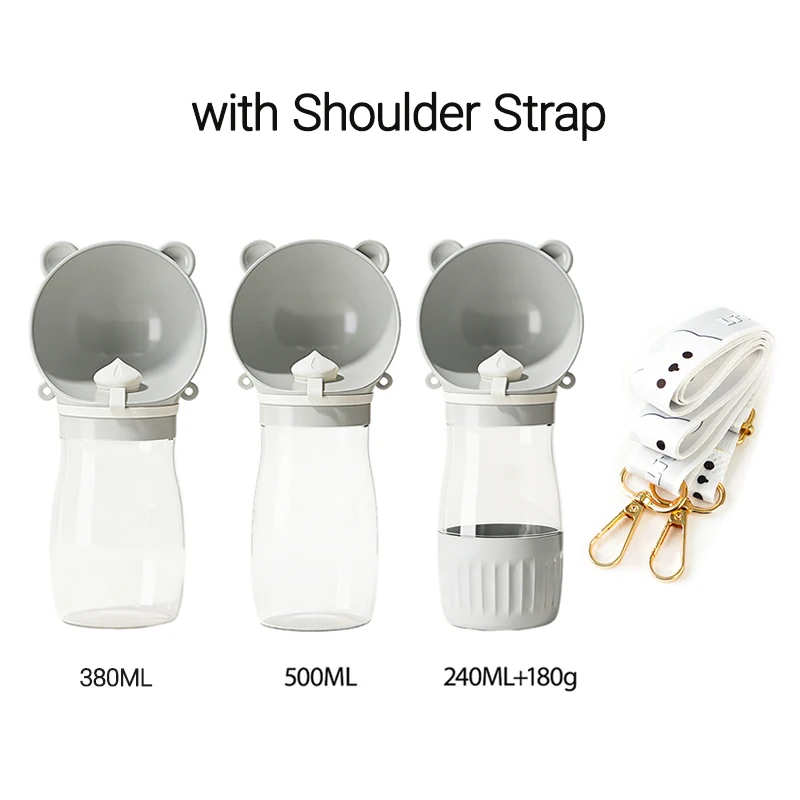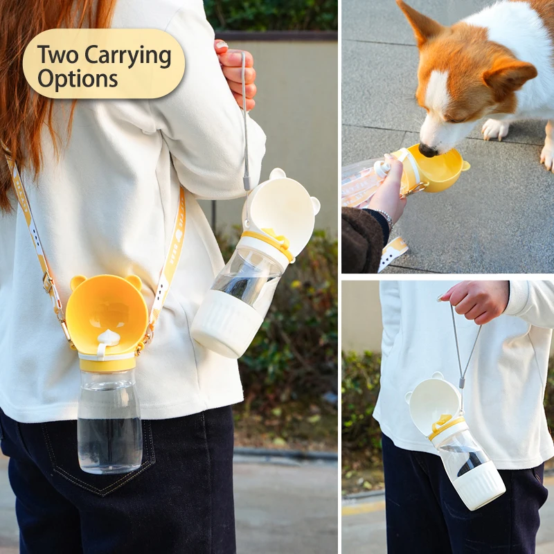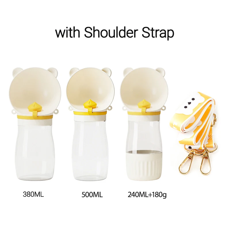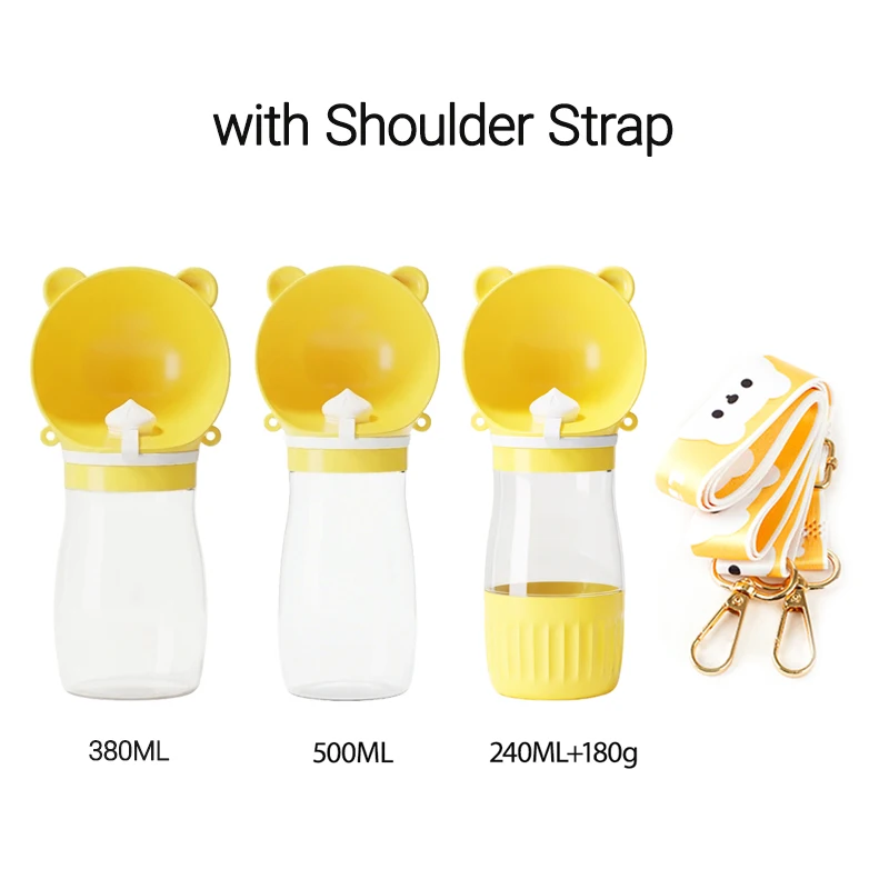 Portable Dog Water Bottle with Shoulder Strap 2 in 1 Pet Drinking Bowl for Small Large Dogs Cat Food Dispenser Yorkie Supplies