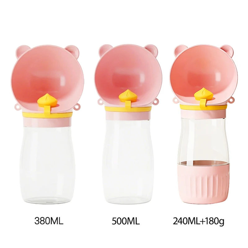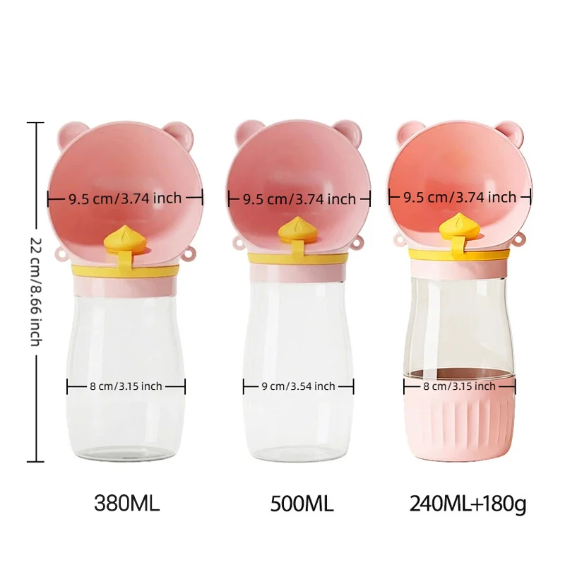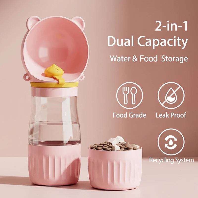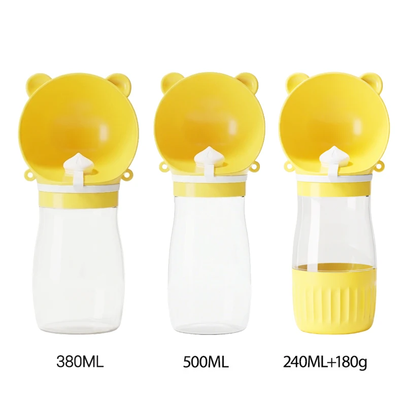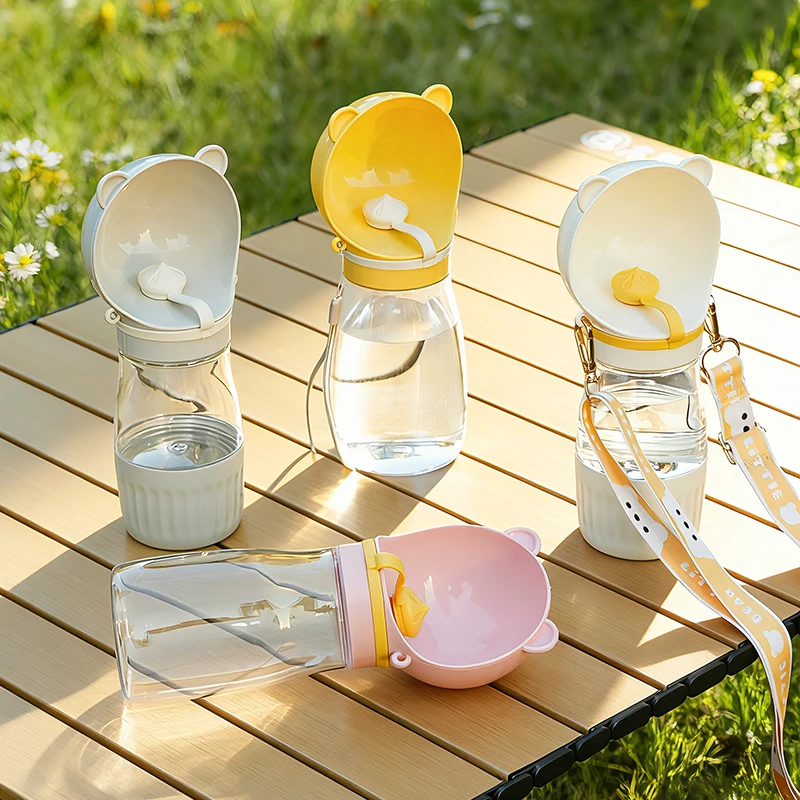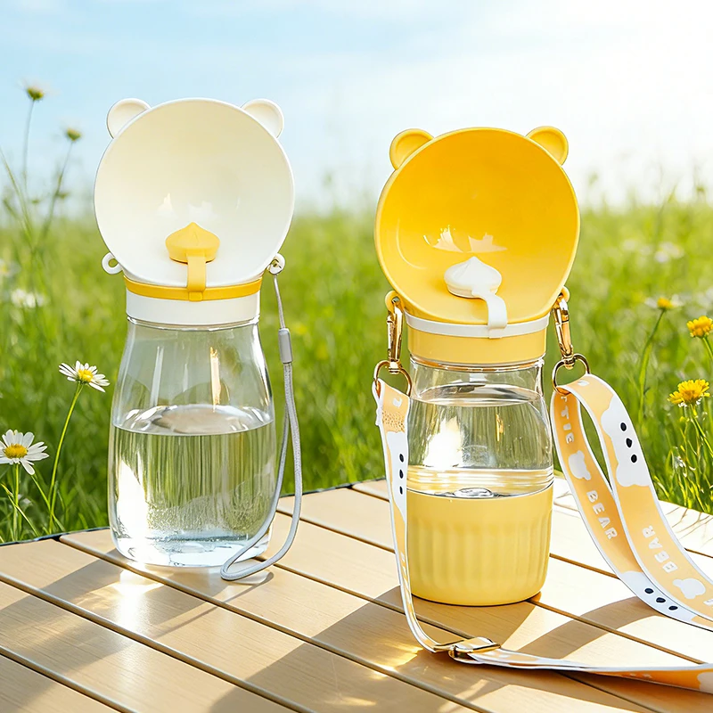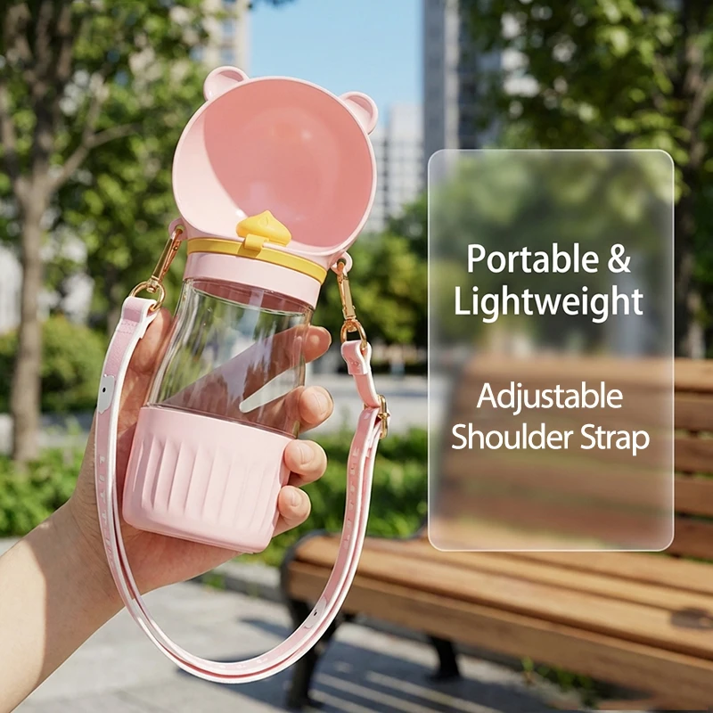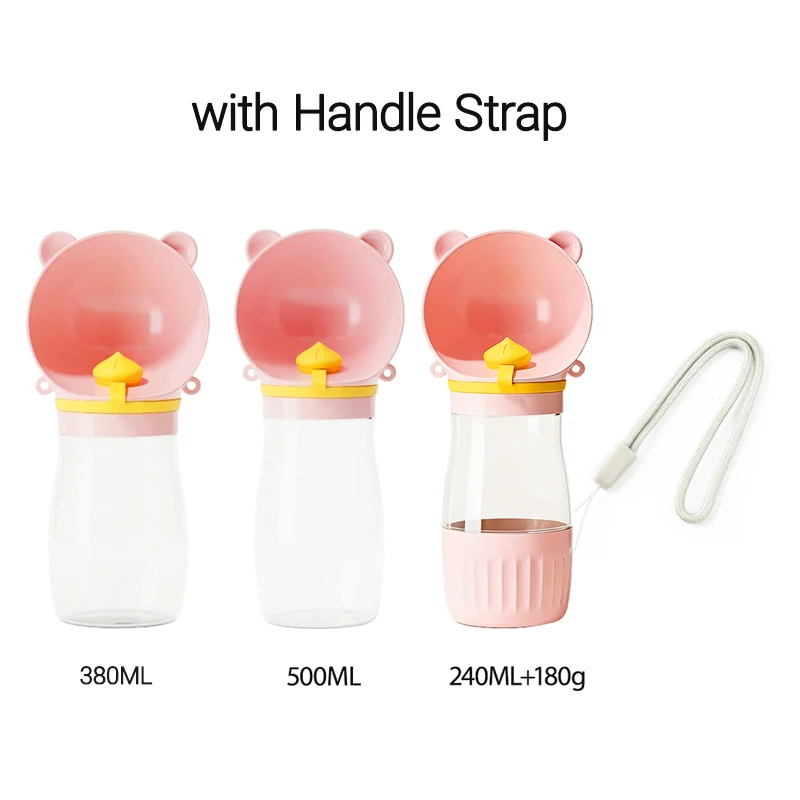 Portable Dog Water Bottle with Shoulder Strap 2 in 1 Pet Drinking Bowl for Small Large Dogs Cat Food Dispenser Yorkie Supplies
