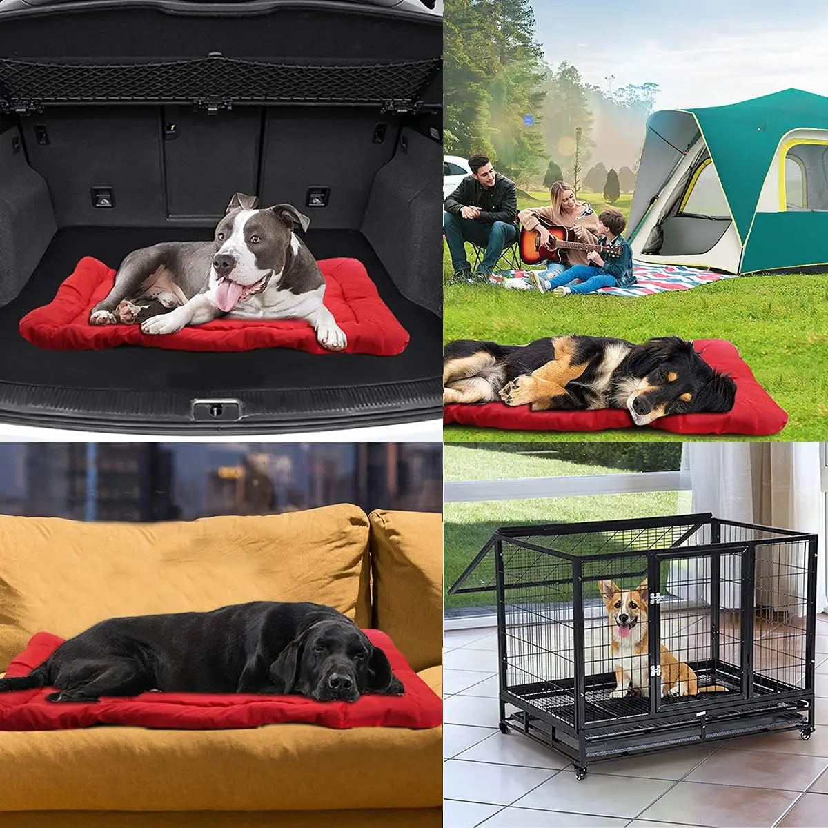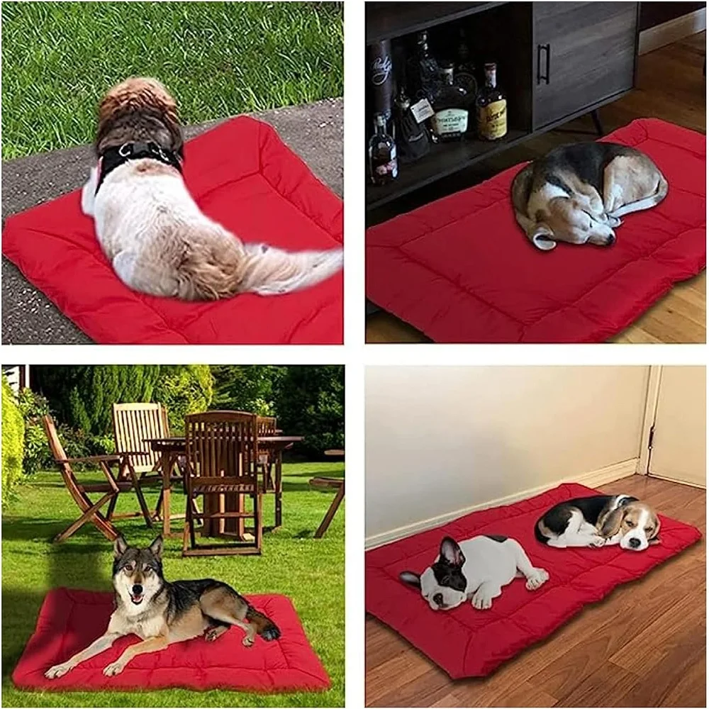 Color: Red Blue Gray Dog Cushions.