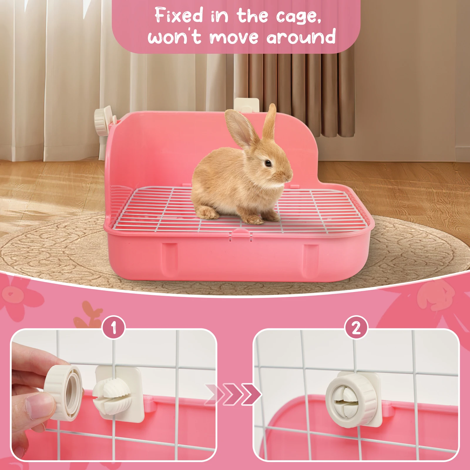 5.Humanized design: The two sides of the toilet is the smooth guardrail and it can prevent urine splashing to other places, make the cage cleaner. Comes with attached cage hooks to hold the litter tray securely to your cage.