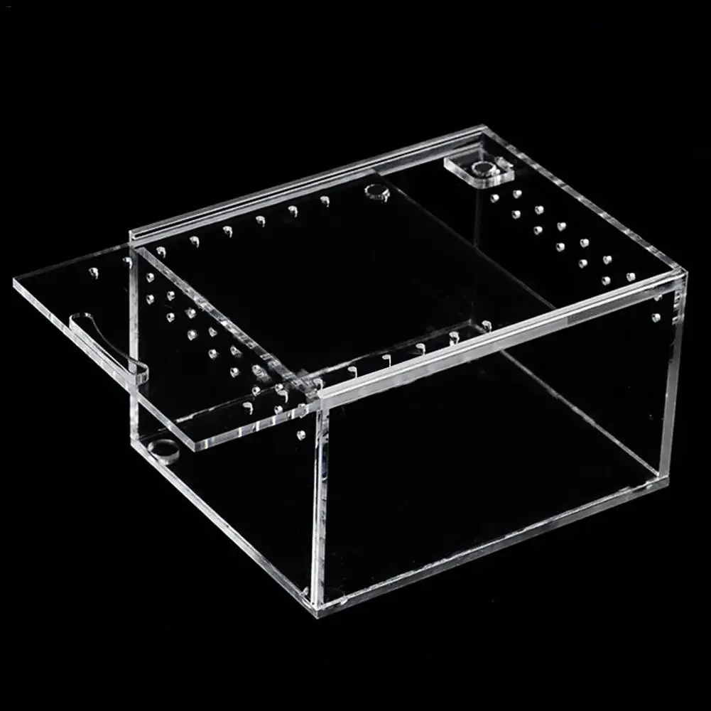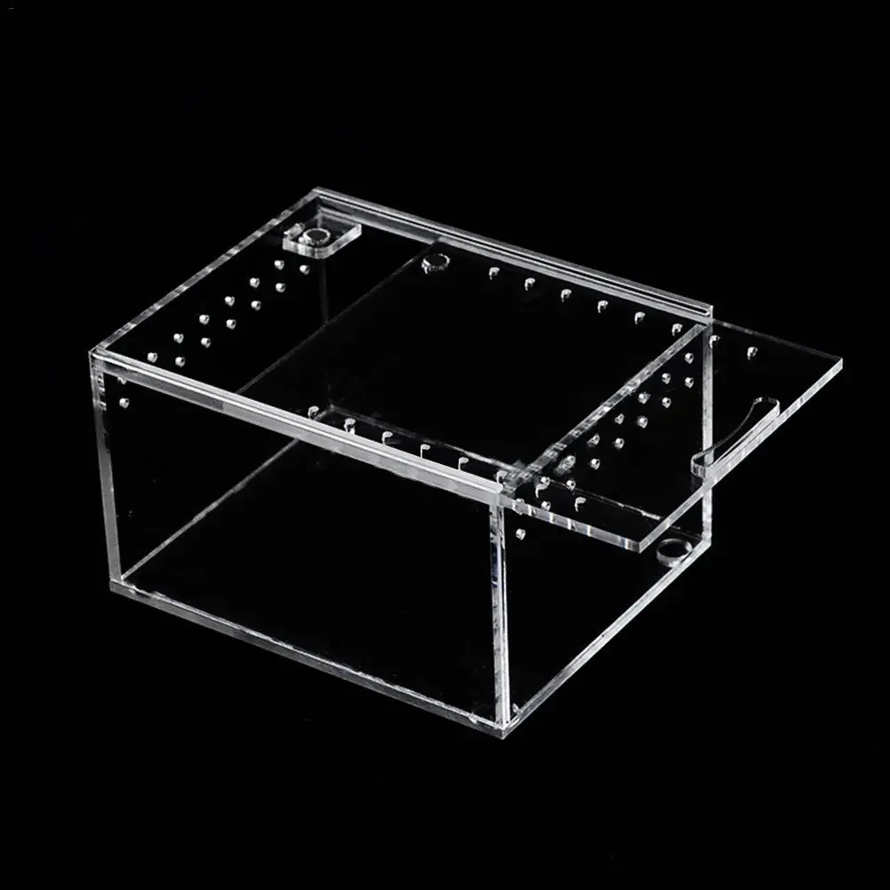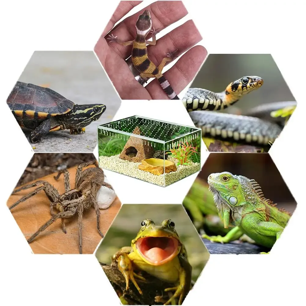 It is a transparent reptile breeding box that is suitable for feeding horned frog, snake, dragonfly, Guardian, spider, lizard, beetle, etc. reptilia small animals.