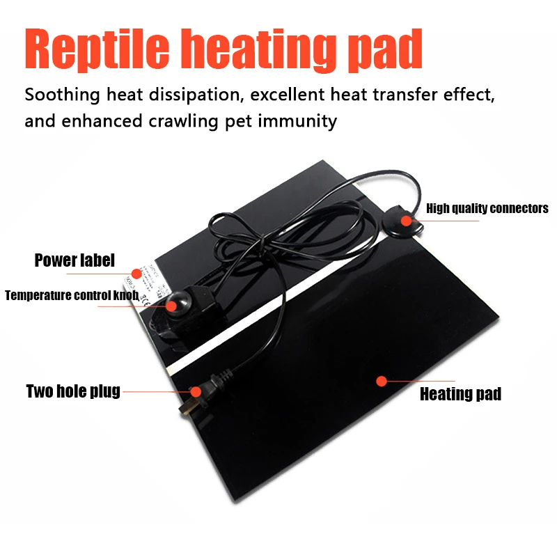 It can heat pet snakes, horned frogs, spiders, and insects. The surface temperature of the heating pad can reach 32 degrees Celsius, and insulation work needs to be done. For indoor temperatures that are very low, ceramic lamps should be used as much as possible for heating.
