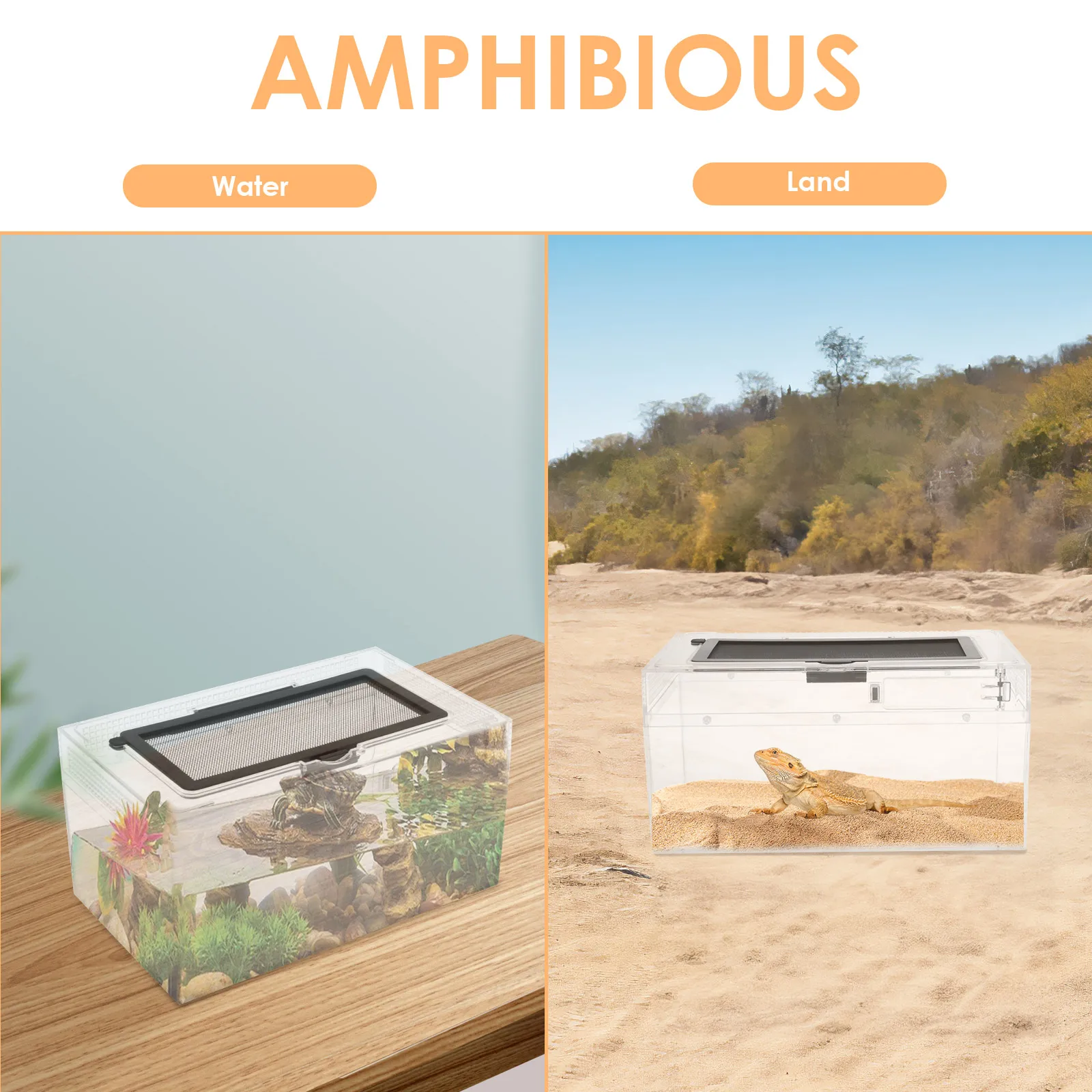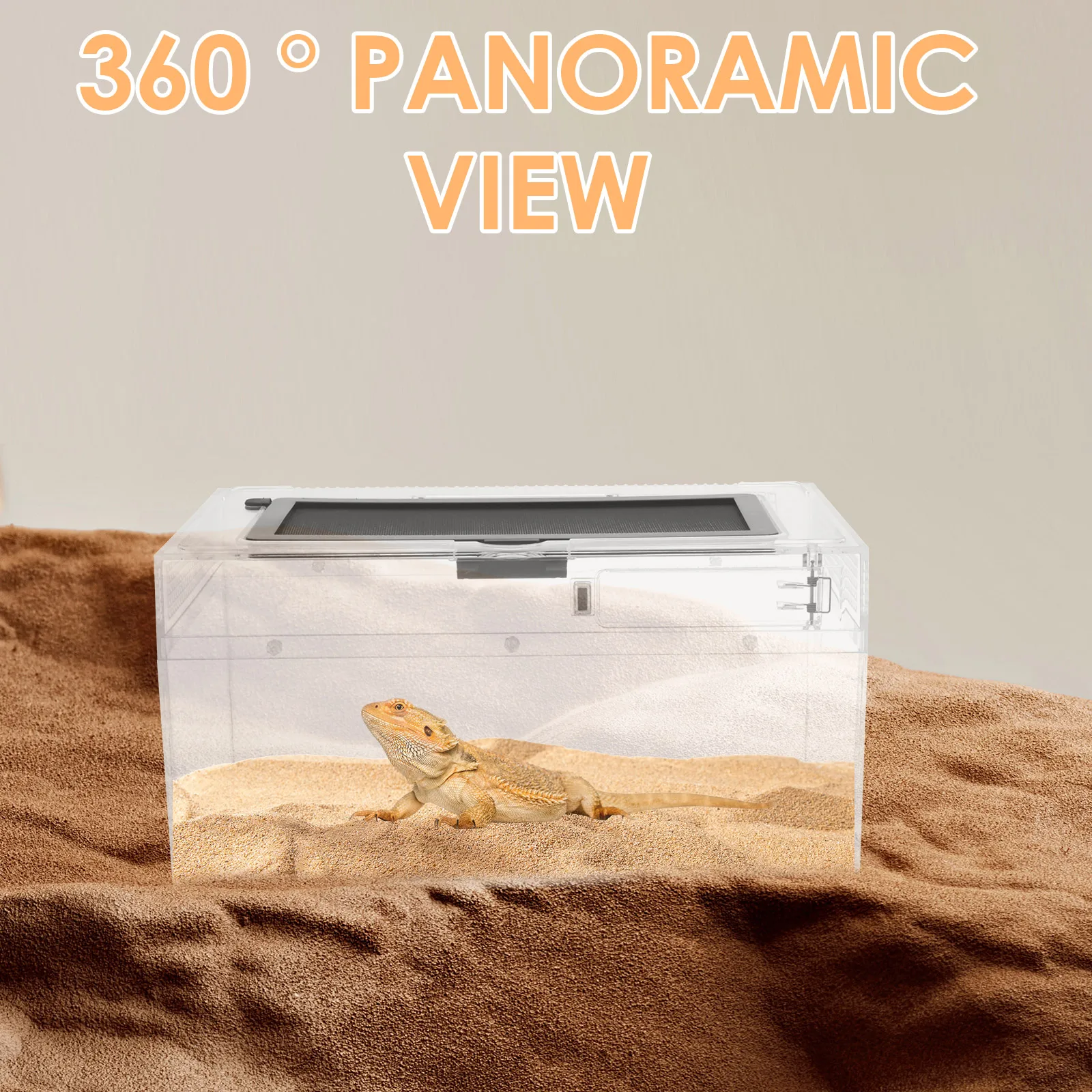 360° Panoramic View: The terrarium adopts a fully transparent design with high transparency and ultra high light transmittance. It offers a 360° all round view , making it easy to clearly observe pet activities from multiple angles , providing viewers with a better vision and increasing viewing pleasure