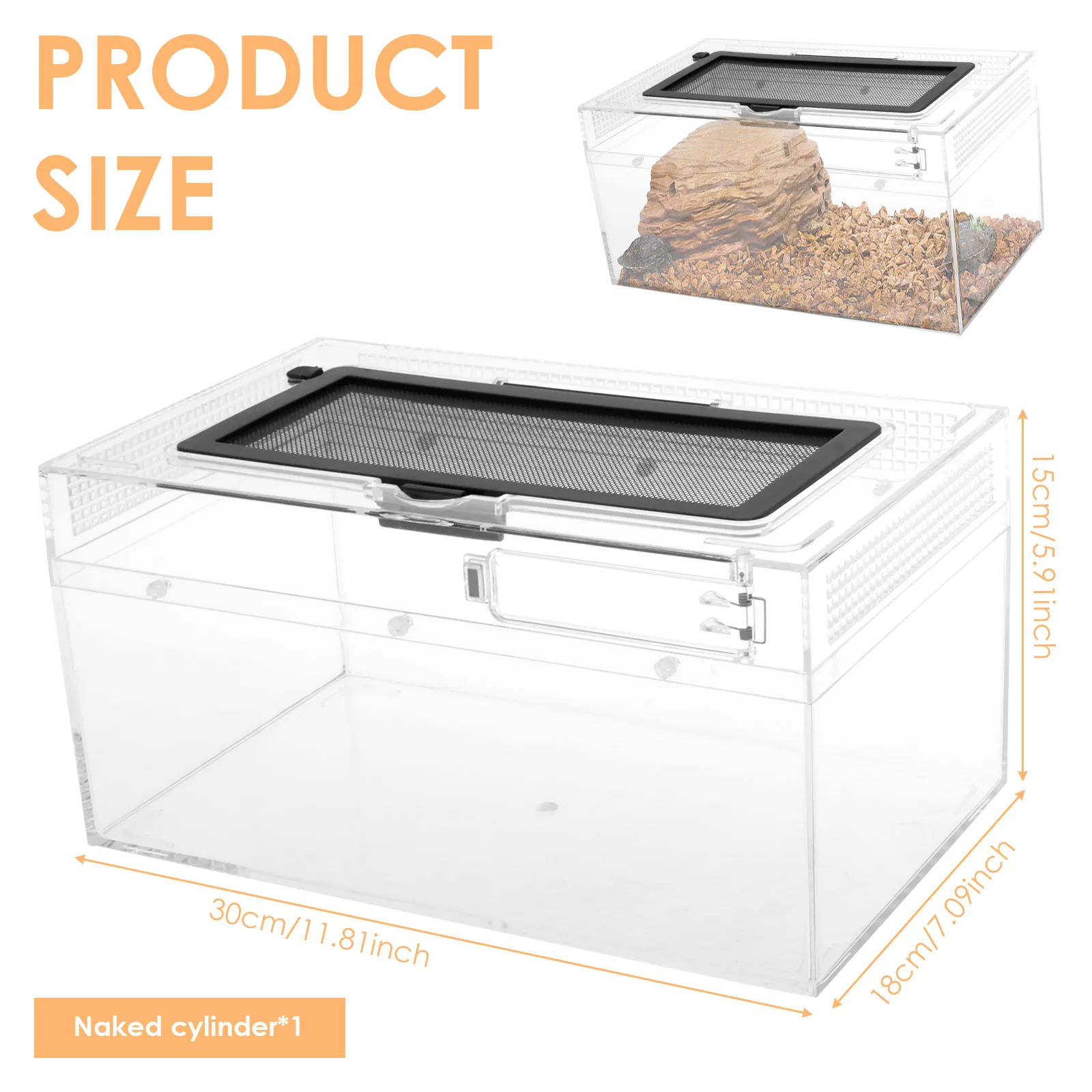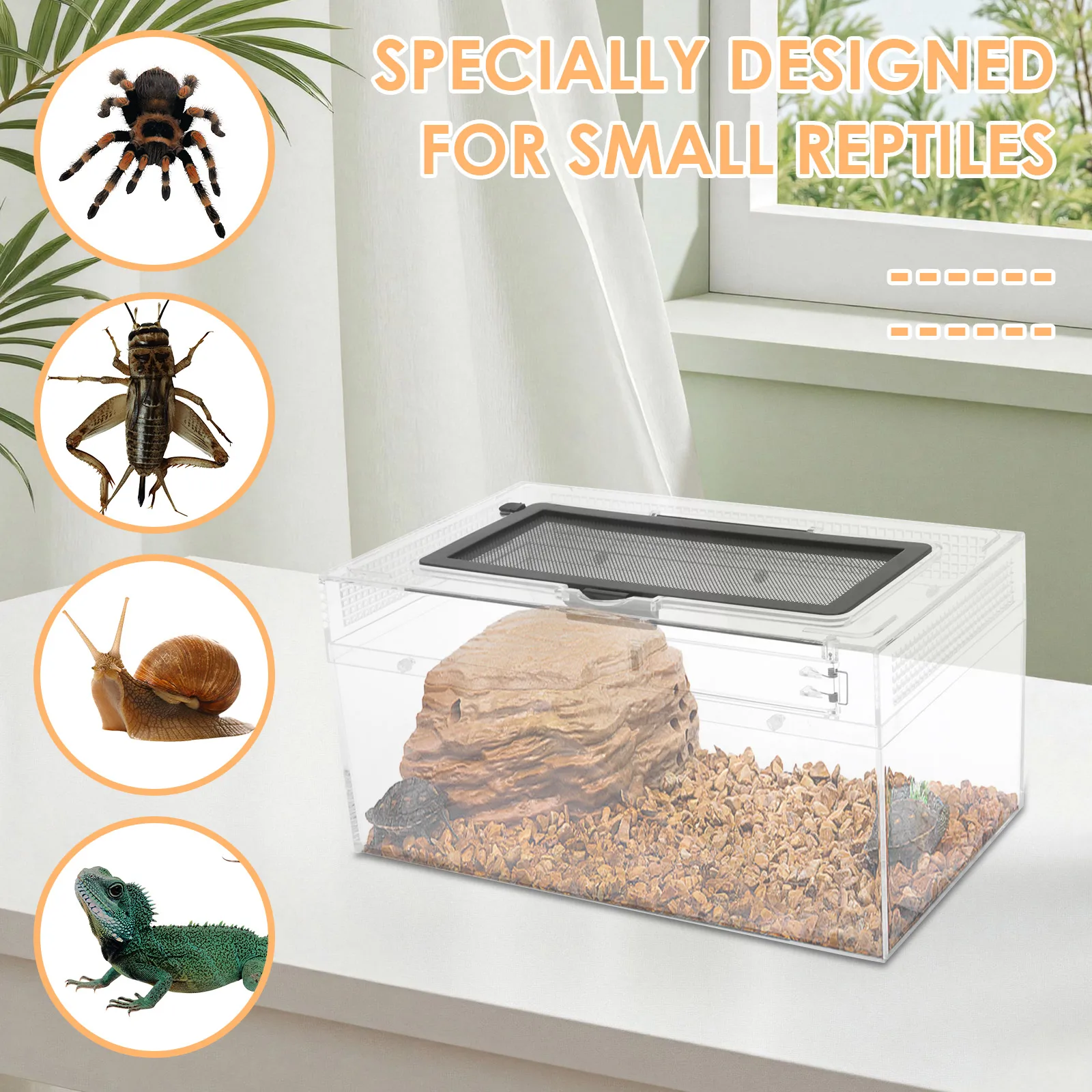 Size Design: With dimensions of 30x18x15cm , this terrarium has a reasonable space and is specially designed for small reptiles. It is suitable for various small pets such as geckos , spiders , crickets , snails , small chameleons , stick insects , etc. , making it an ideal choice for home breeding