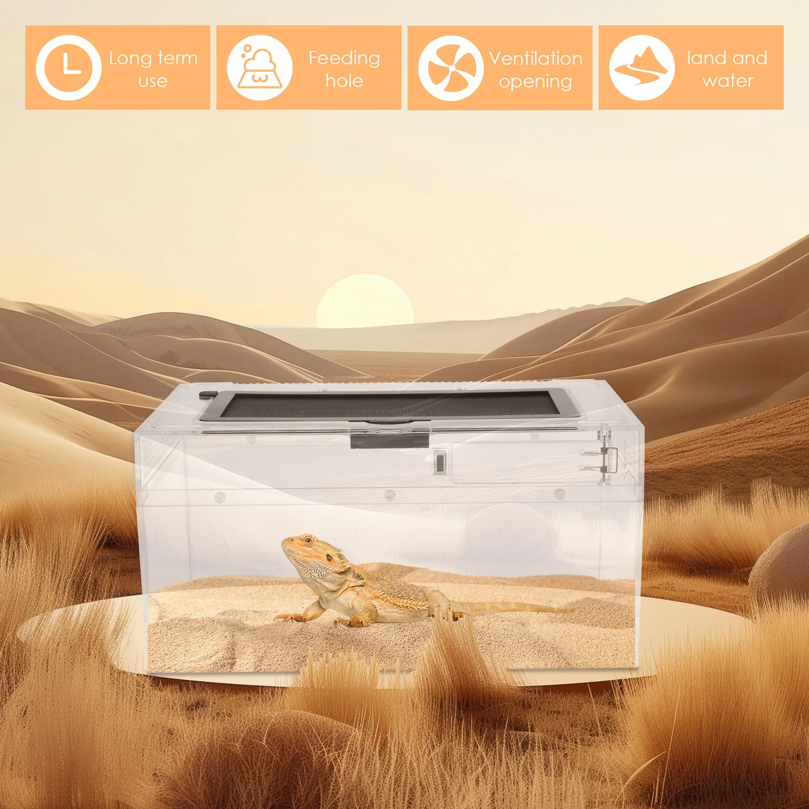 Unique Design: The top of the terrarium is equipped with an ultra convenient feeding hole and a metal mesh vent , providing good ventilation. The feeding hole allows easy feeding with a light push and closes automatically , while preventing pets from escaping. It balances safety and observation convenience , creating a more comfortable and convenient breeding environment