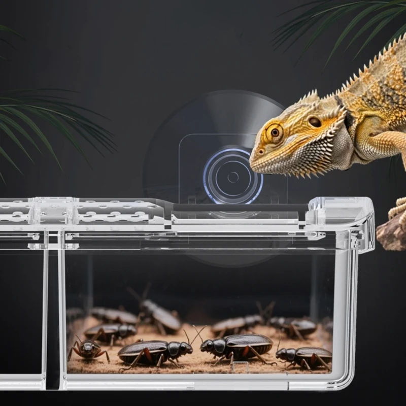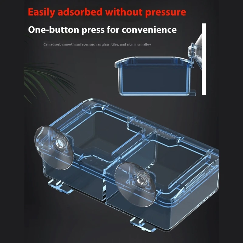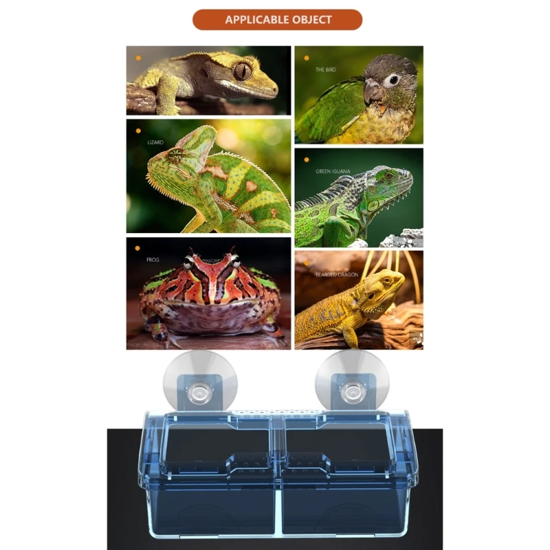 EASY TO MOVE and INSTALL Our reptiles feeding box can easily move from location to another, bringing you convenience without increasing costs. It have extremely strong suction cups, can adsorbed on, ceramics tile,and other smooth plane, strong suction, not easy to fall off