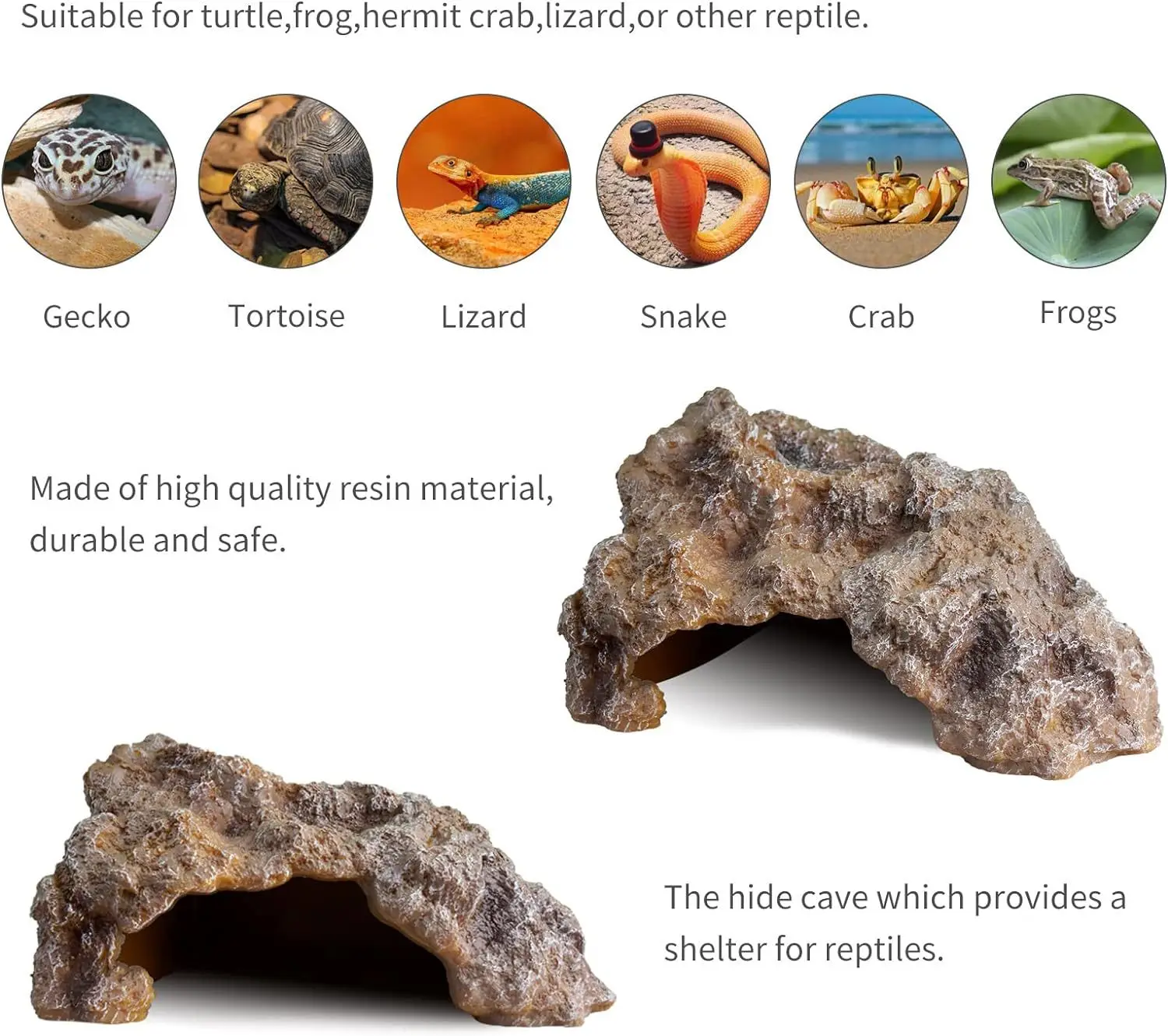 Be the first to review “Rock Texture Reptile Hideout & Basking Platform – 3-in-1 Eco Resin Shelter for Gecko/Snake/Turtle”