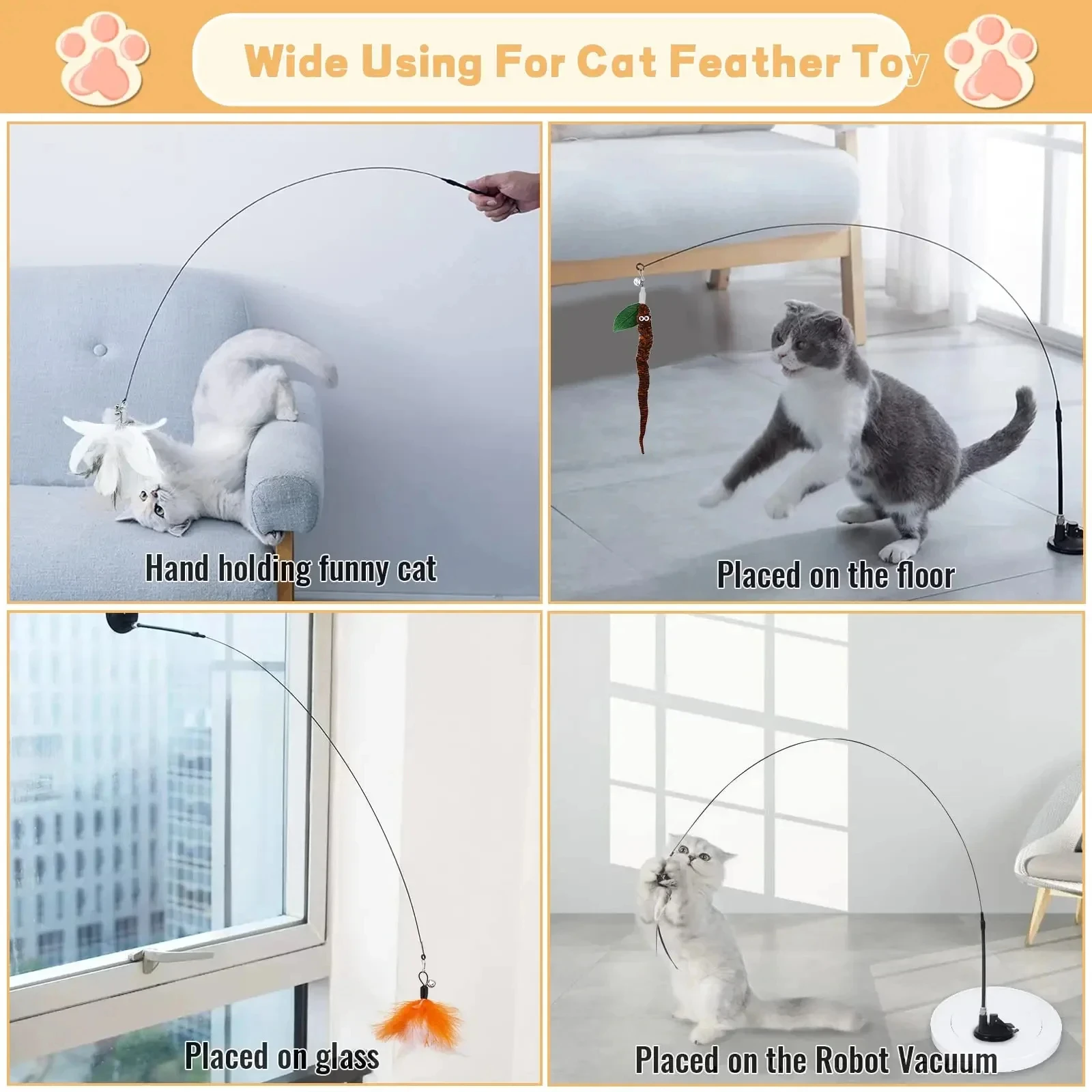 Suction cup type: You can fix it on the floor or wall, and the cat will play with it. You can separate the stick from the base, hold it and play with the cat.