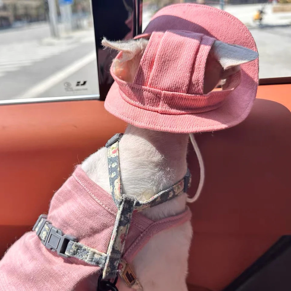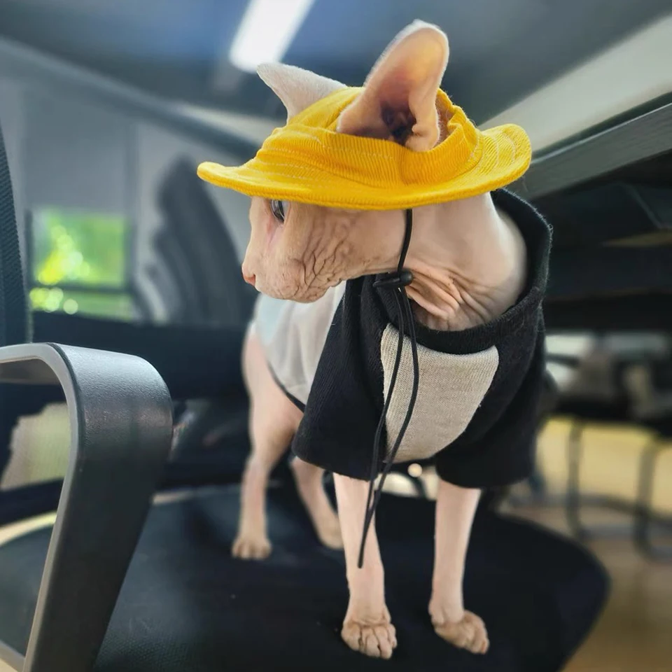 Spring Summer Cotton Cat Hat With Ear Holes For Sphynx Hairless Cats Solid Color Devon Rex Sunscreen Tie Dye Adjustable Hats – PawMarketplace
