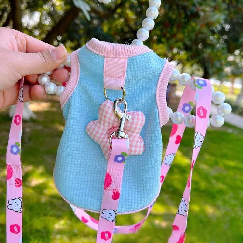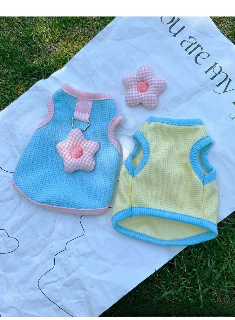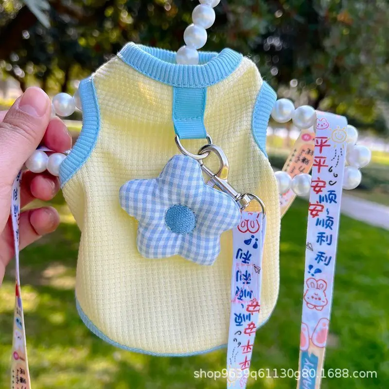 Spring Summer Pet Clothes For Cats Dogs Breathable Sunscreen Anti-shedding Puppy Kitten Apparel With Leash Ring
