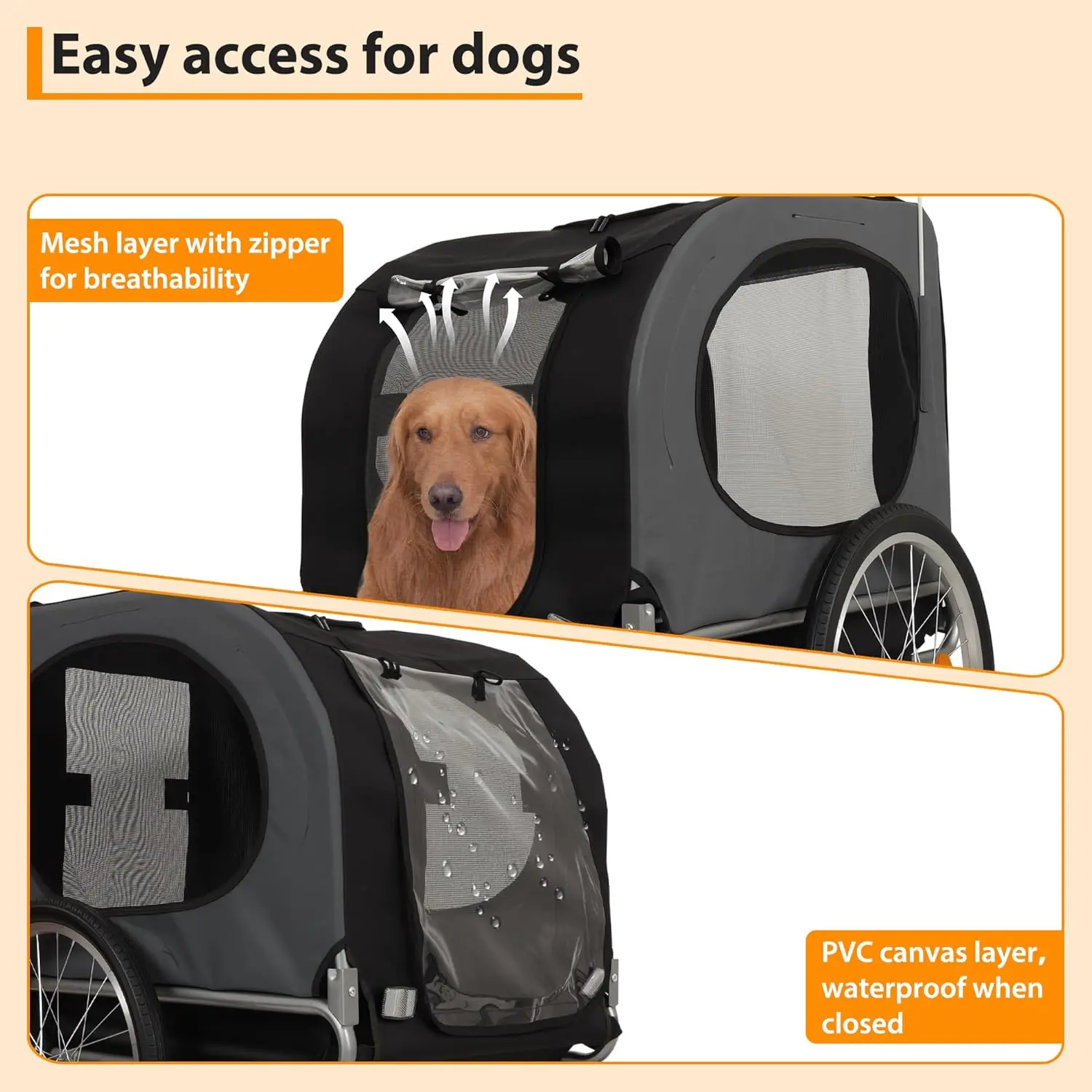 【Safe, Sturdy Ride for Your Furry Friend】Give your pet the comfort they deserve with this premium bike dog trailer! Built from a tough carbon steel frame and durable 600D Oxford fabric, it keeps pets up to 88 lbs secure on every adventure. The padded interior softens shocks, while the semi-open design lets them enjoy fresh air and scenery without risk. Perfect for daily rides or weekend trails—your pup will love the safe, cozy journey!