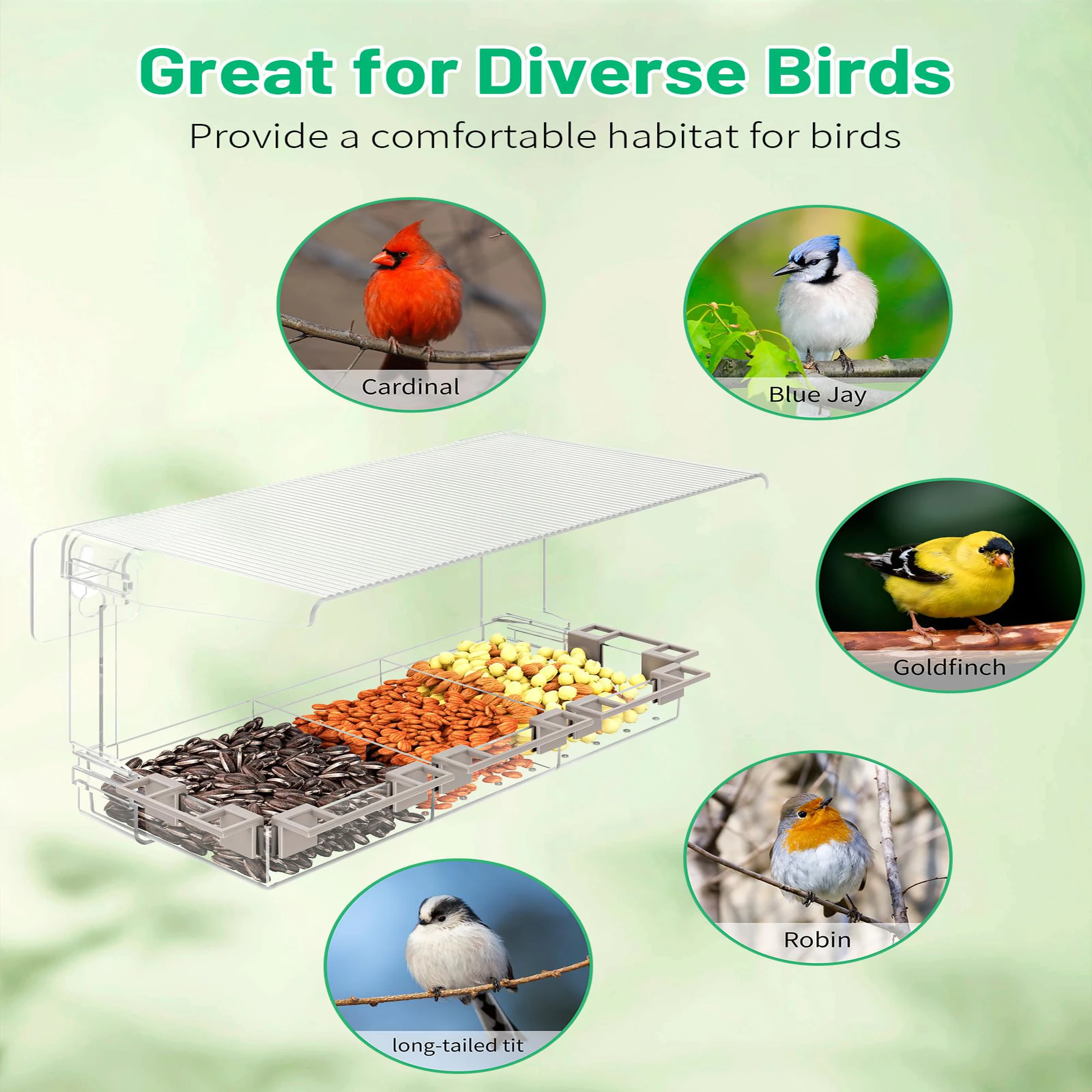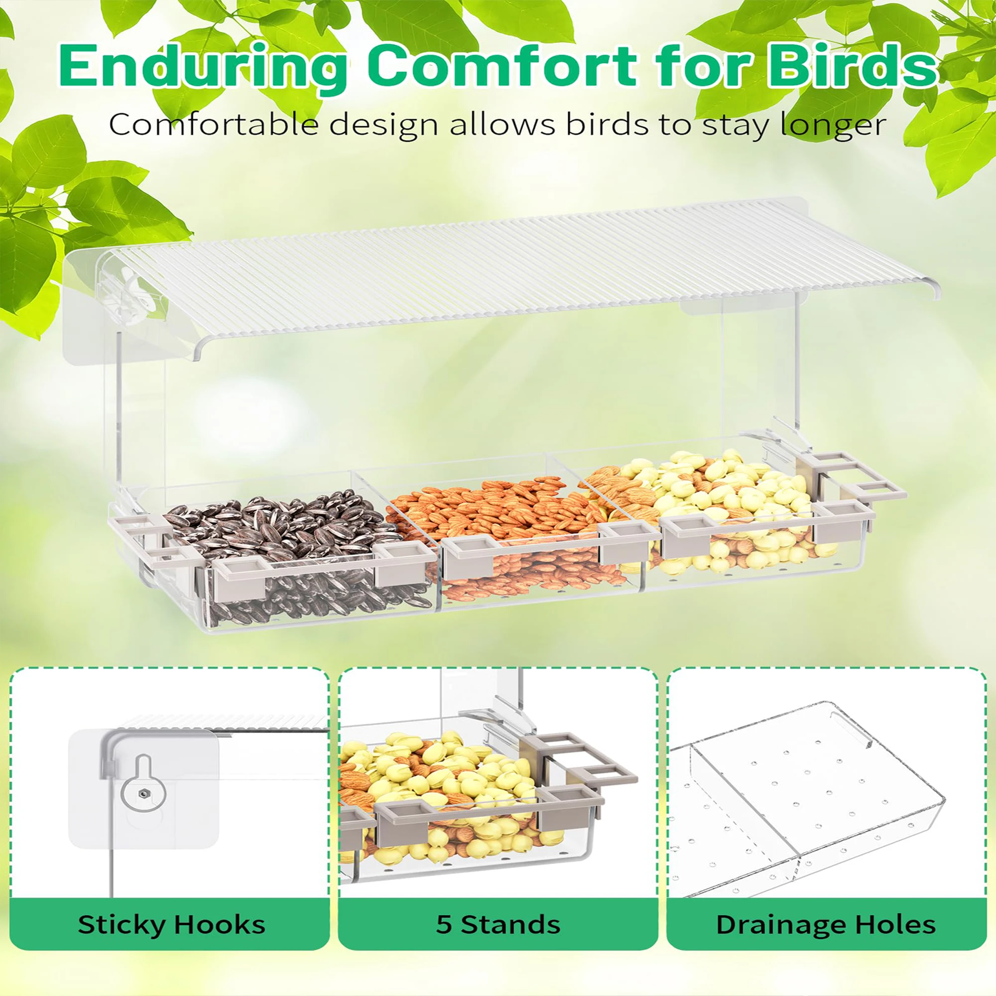 Transparent Window Bird Feeder,Outdoor Garden Courtyard Hummingbird Feeder Wild Bird Feeder,with 5 Bird Stand and Strong Adhesiv – PawMarketplace