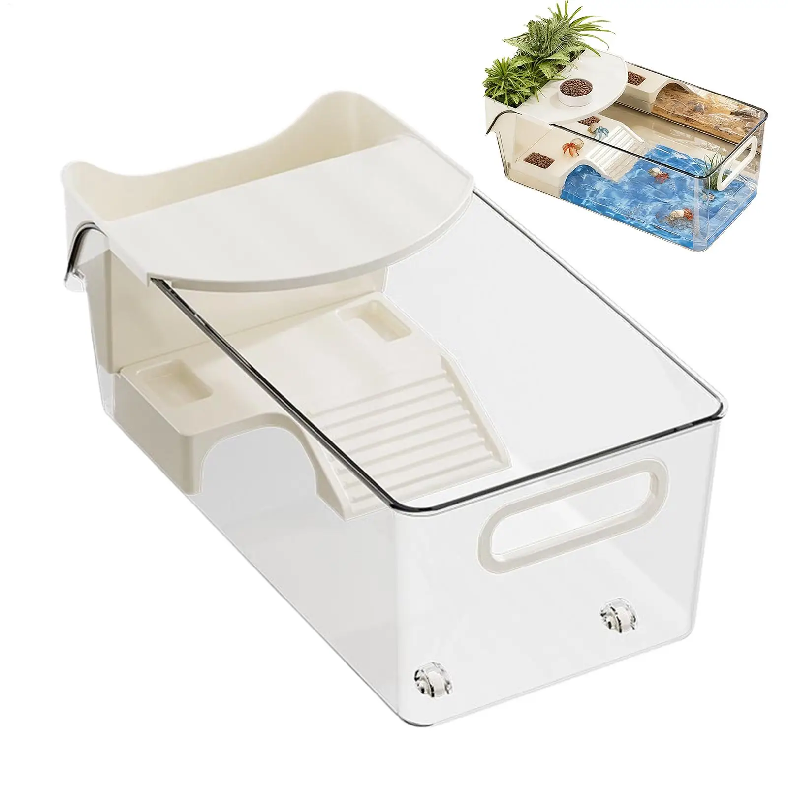 Turtle Tank Large Terrarium with Basking Plat Clear Tortoise Tank Reptile Enclosure for Tree Frog Salamanders Crayfish Small