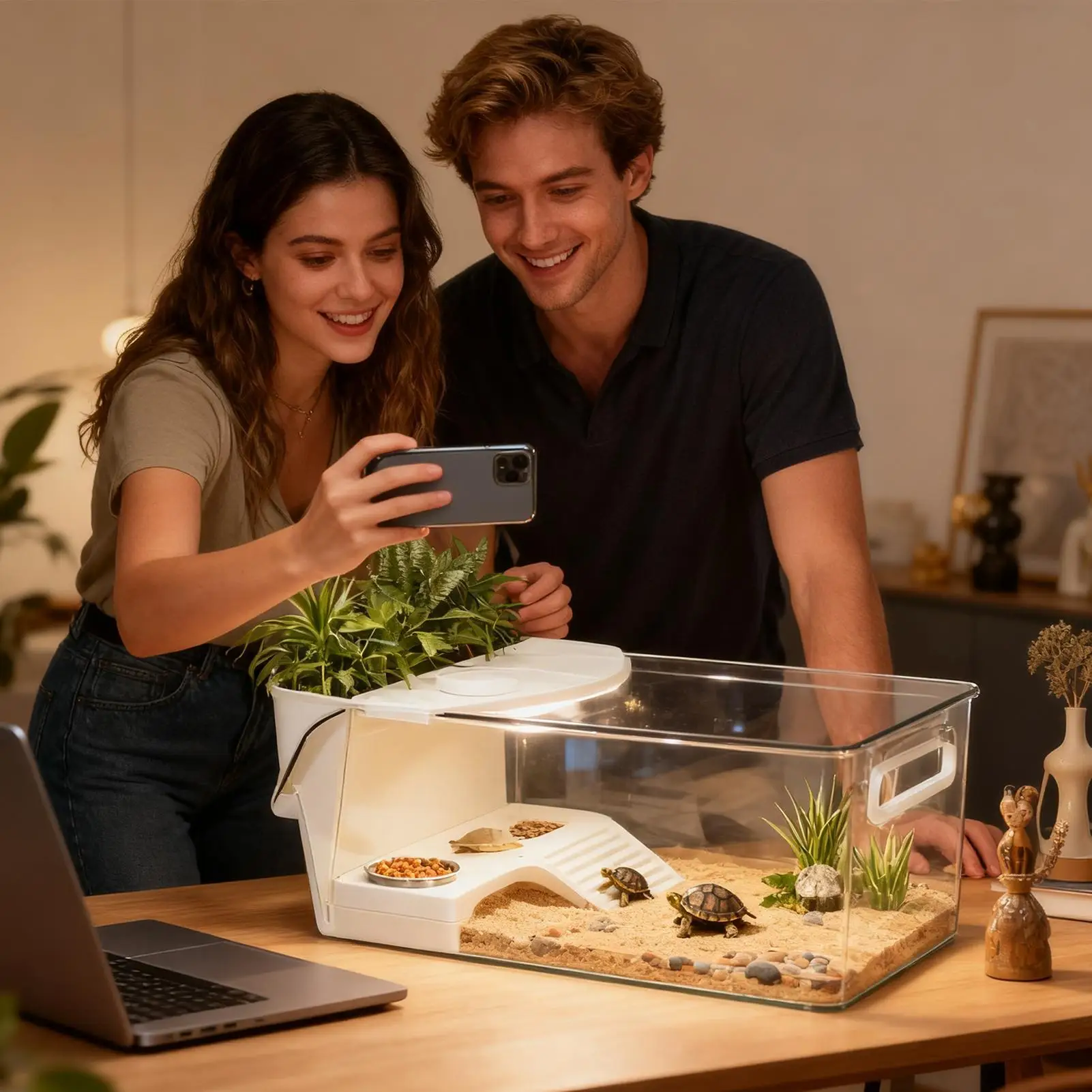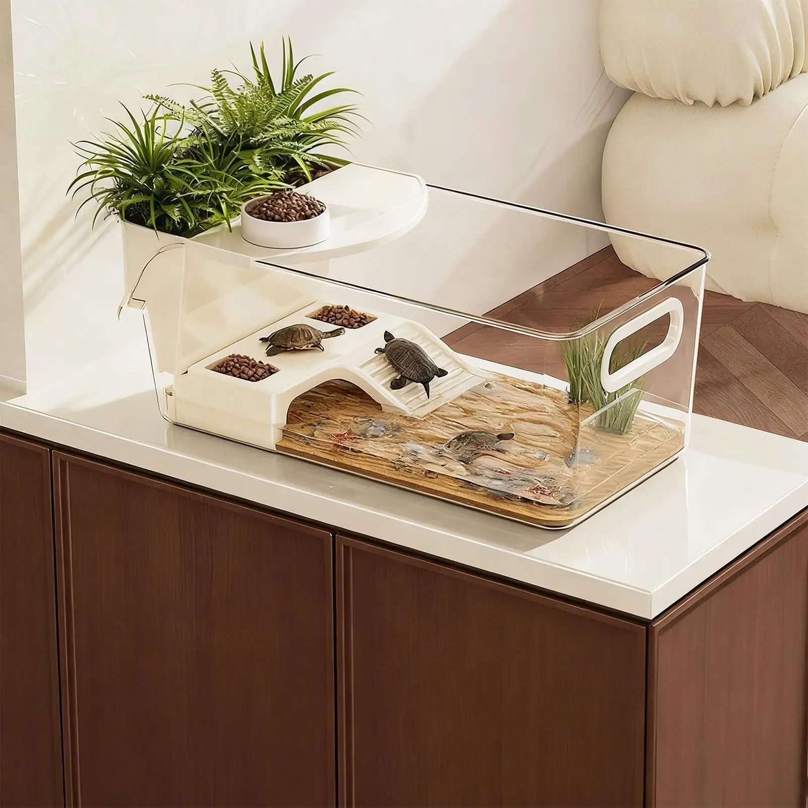 1.Widely Applied: The Turtle Tank functions as an innovative aquatic enclosure crafted for turtles and fish, offering double-habitat compatibility with a concentration on aesthetic integration;its clear design adds a decorative touch suitable for living room desktop placement