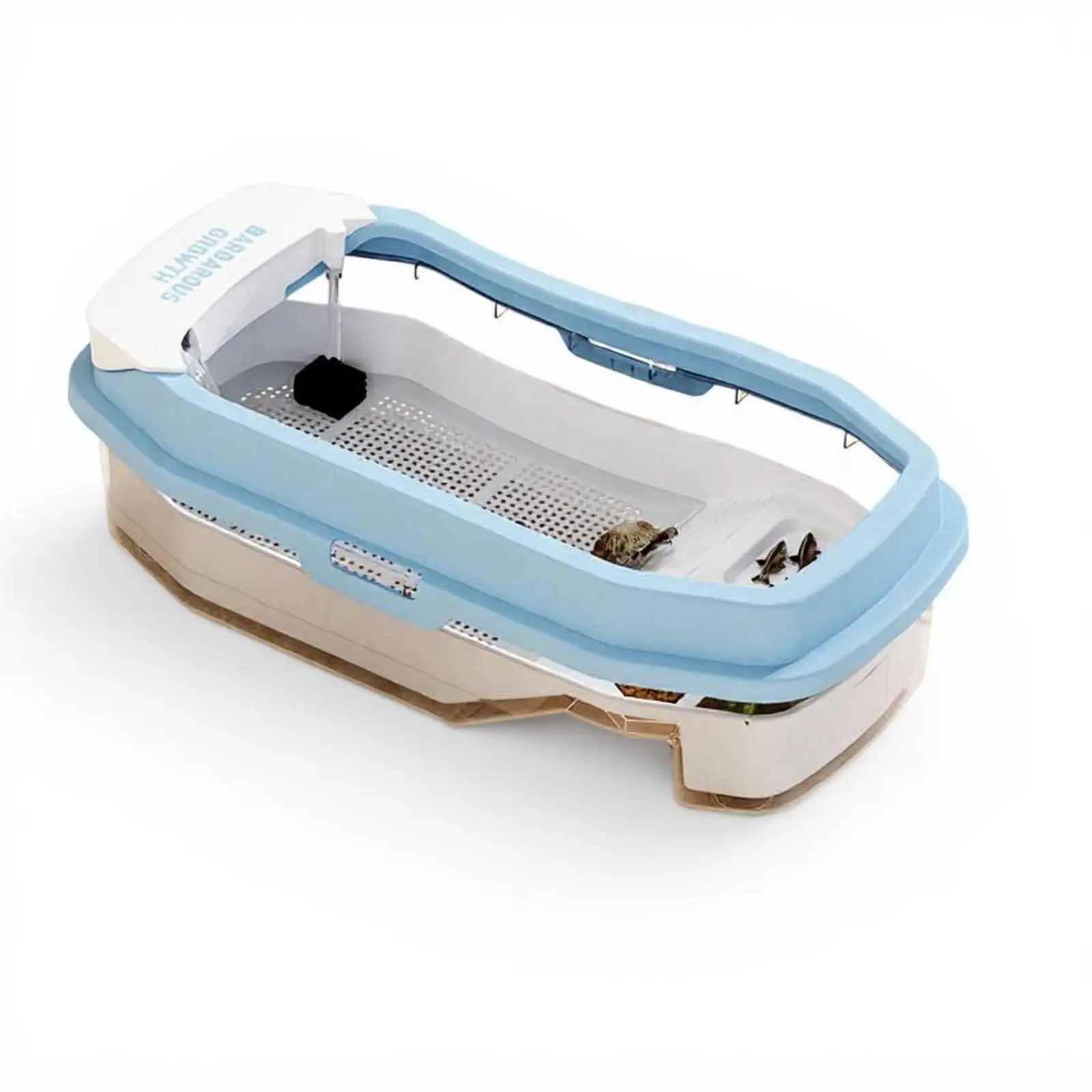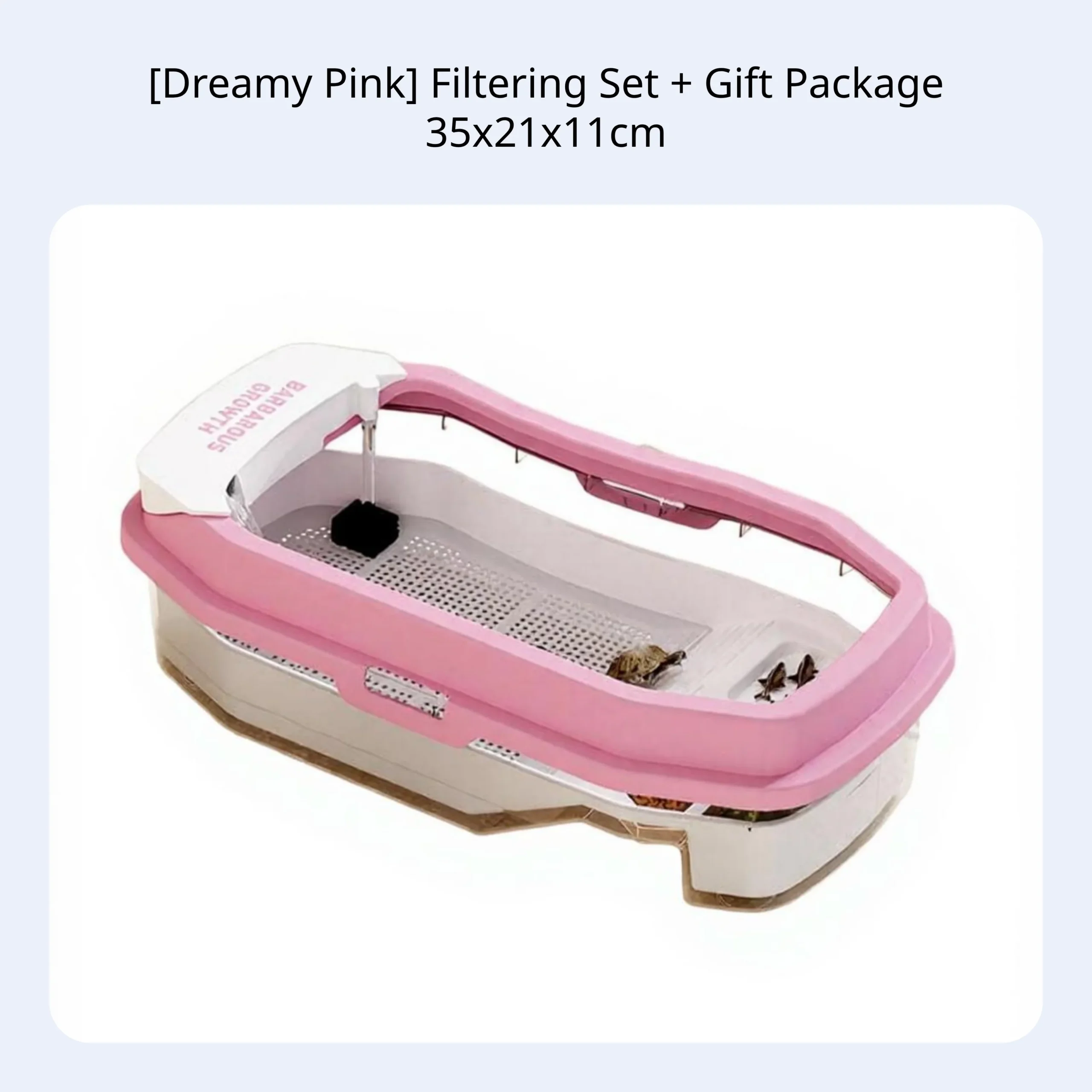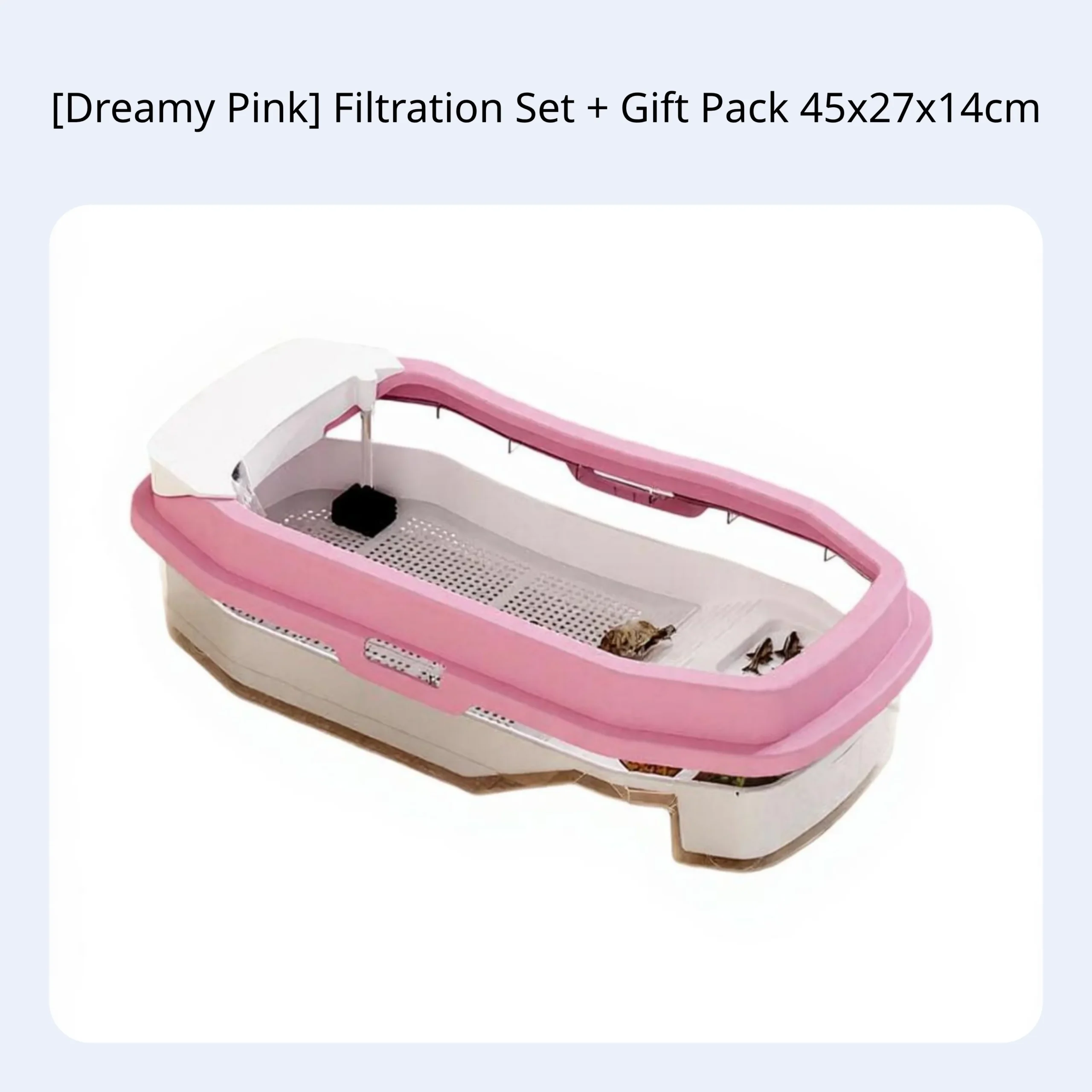 Create a natural habitat for turtles or reptiles with this spacious terrarium, featuring a basking platform, built-in filtration, and smart partitions for comfort at home or office. Made from durable, safe PP/PET material for long-lasting use and pet safety. Easy water changes and cleaning with a detachable design and drainage basket. The inward lid prevents escapes for worry-free use. Includes filtration box, pump, purifier cotton, decorative stones, turtle food, fish mesh, artificial foliage, and ornaments—ideal for beginners and educational observation.