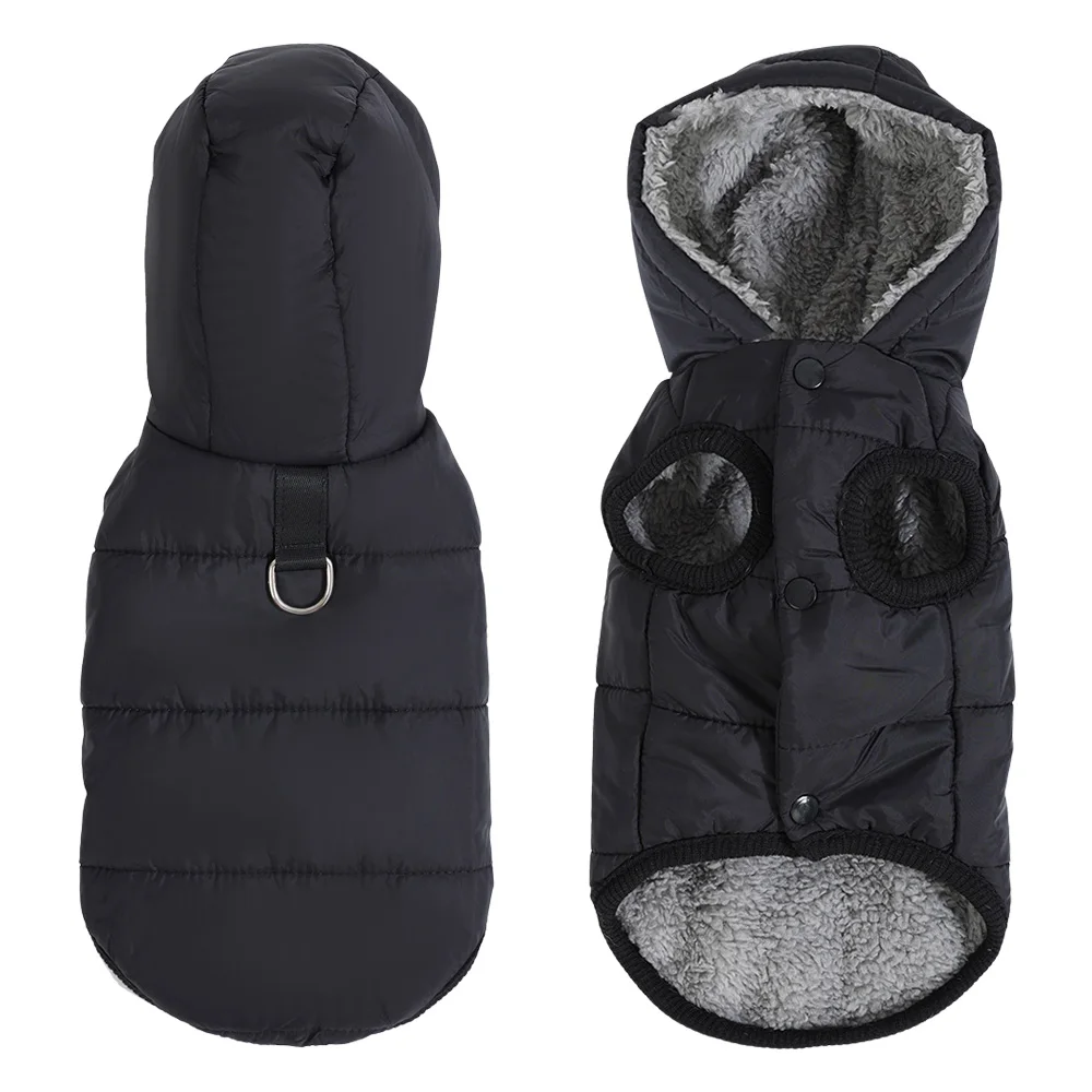 Feature:Fashion Design,Winter Warm Dog Clothes,Windproof and Waterproof Dog Coat,Dog Clothes with D-ring,Hooded Dog Clothes